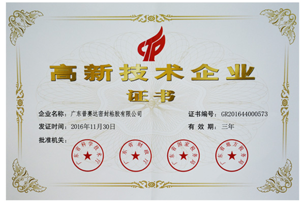广东普赛达密封粘胶有限公司榜上有名通过2016年国家高新技术企业复审。